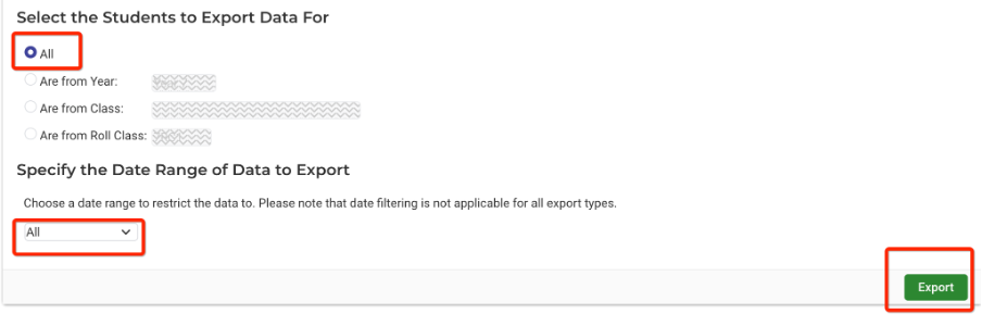 - Click on Export Data