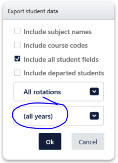 - Click on Students then Student Data -> Include all student field -> Select “Year 7”