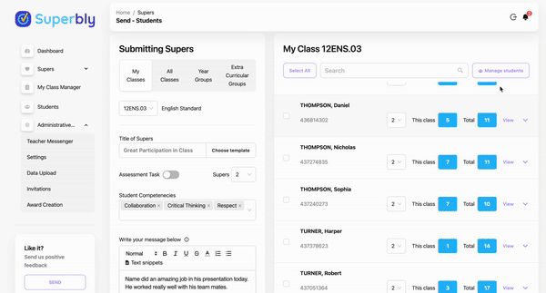 - Click on the "Manage Students" button