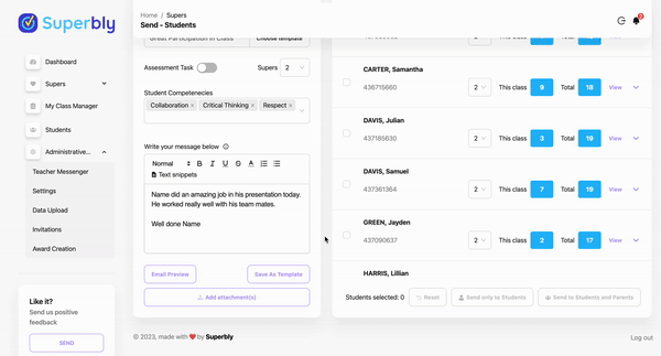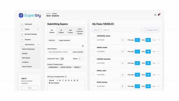 Click “Use” - the students in the group will then populate in your class list, ready to send Supers